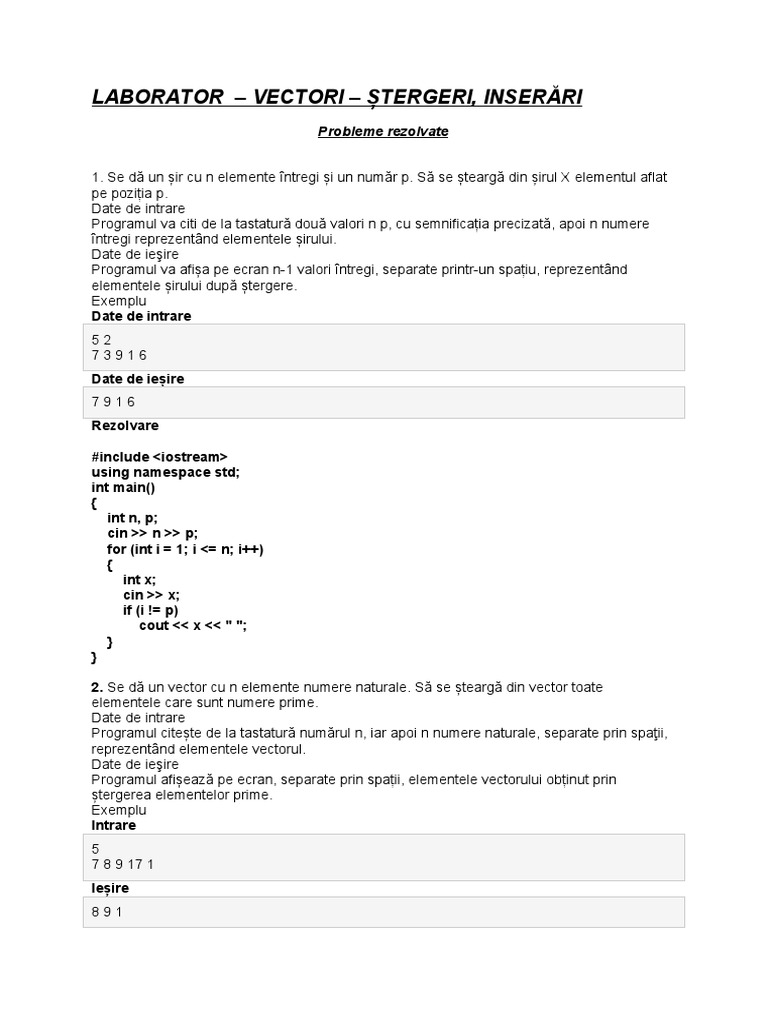 LABORATOR – VECTORI – ȘTERGERI, INSERĂRI
