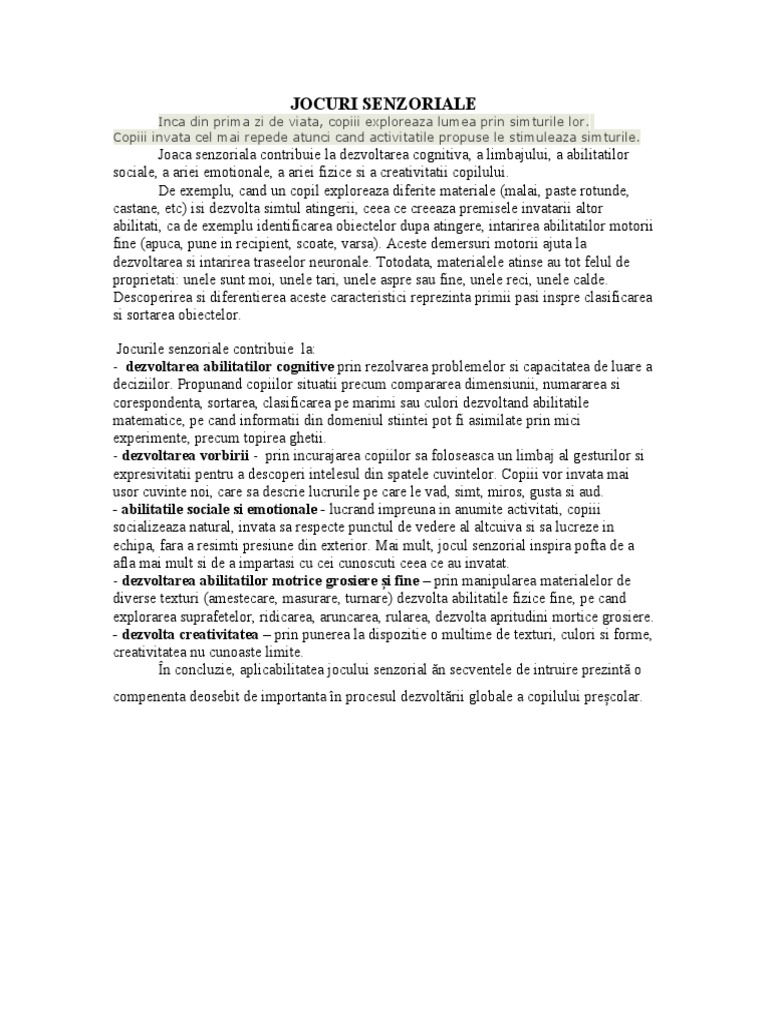 dezvoltarea si intarirea traseelor neuronale. Totodata, materialele atinse au tot felul de