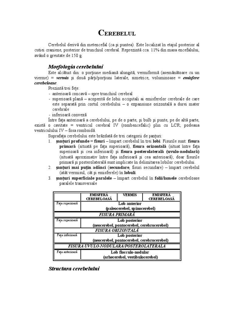 cutiei craniene, posterior de trunchiul cerebral. Reprezintă cca. 11% din masa encefalului,