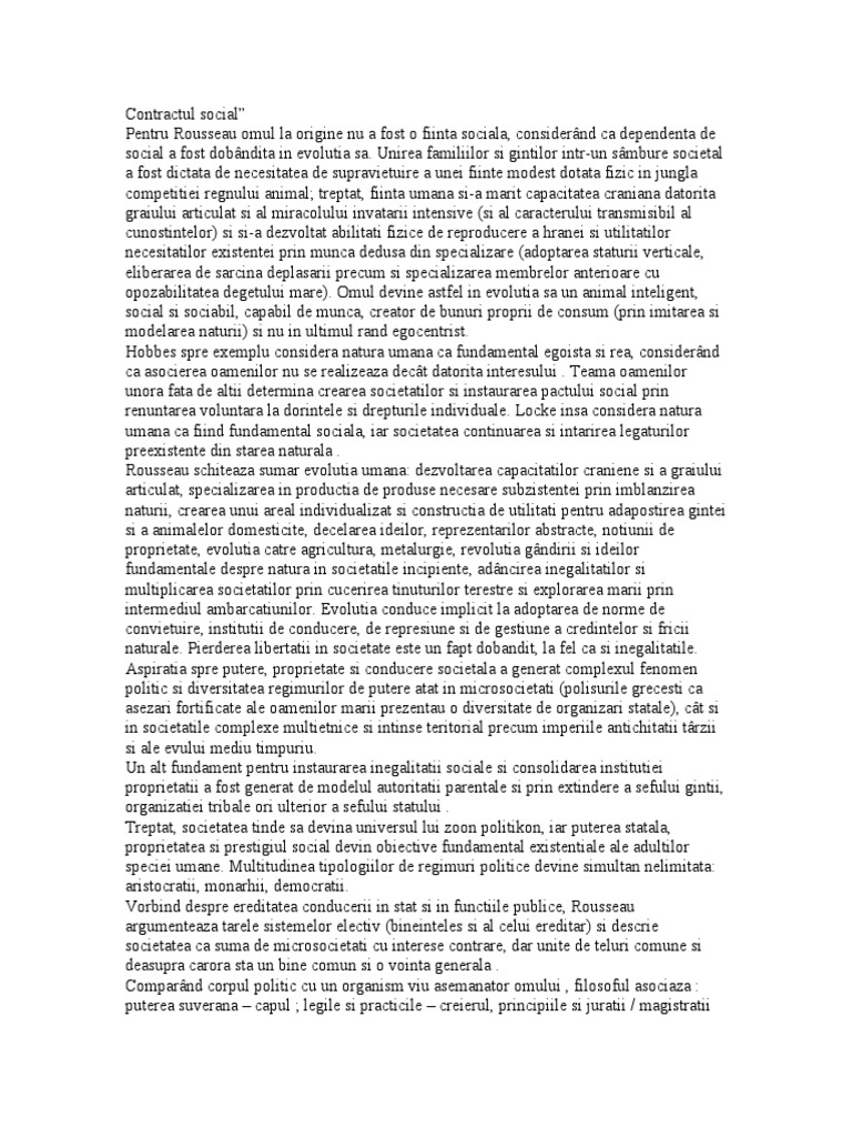 Contractul Social este contractul tuturor si intre toti, reprezentand vointa generala , acest