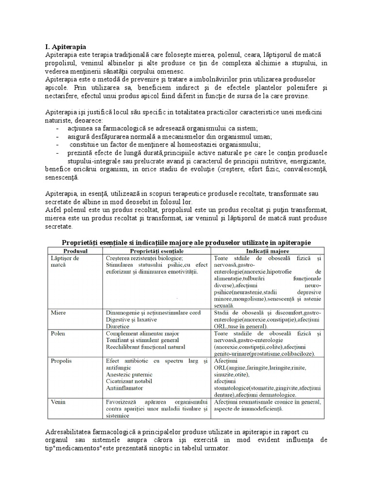 Apiterapia, in esenţă, utilizează in scopuri terapeutice produsele recoltate, transformate sau