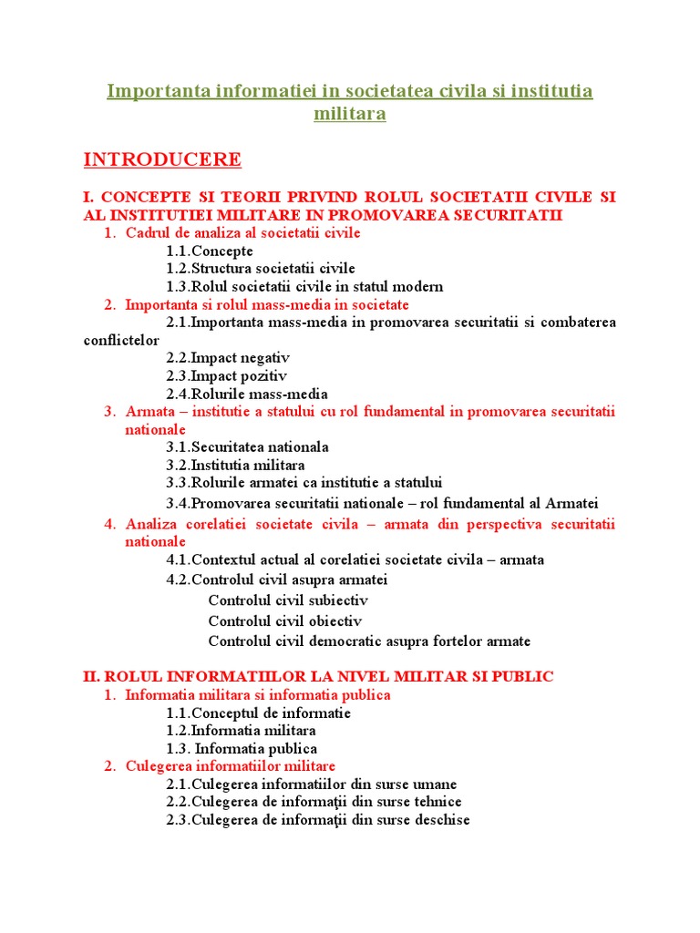 II. ROLUL INFORMATIILOR LA NIVEL MILITAR SI PUBLIC