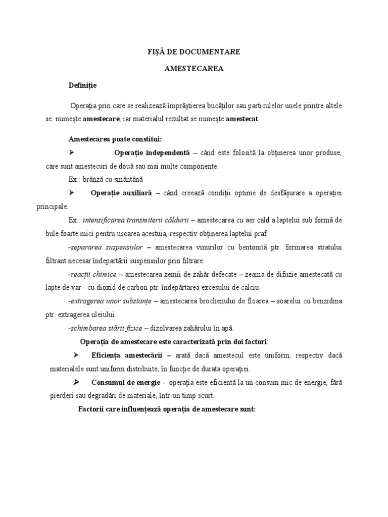 amestecare – în cazul materialelor solide, iar utilajele – amestecătoare.