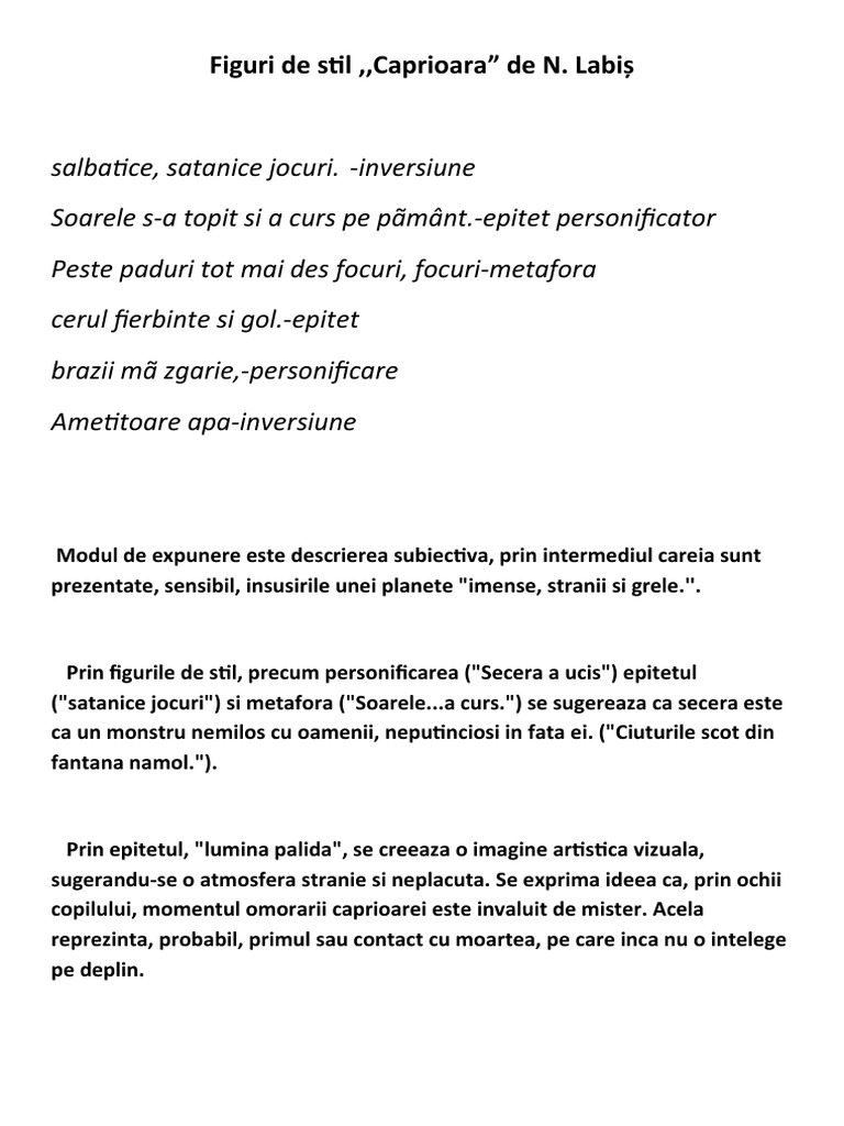 Figuri de stil ,,Caprioara” de N.
