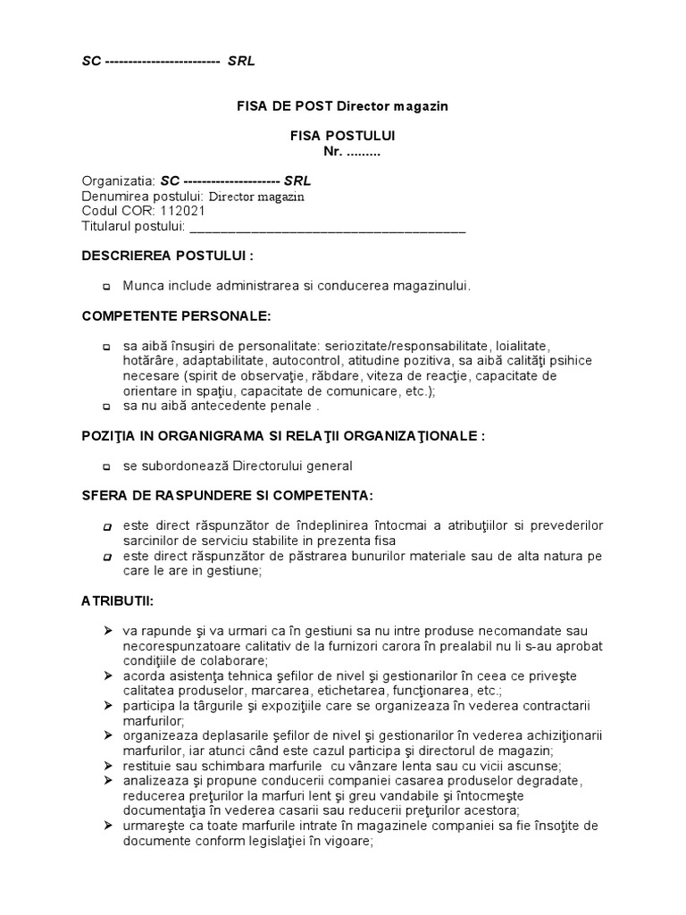 RESPONSABILITĂŢILE POSTULUI DE MUNCĂ