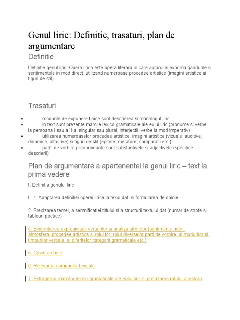 II. 1. Adaptarea definitiei operei lirice la texul dat, si formularea de opinie