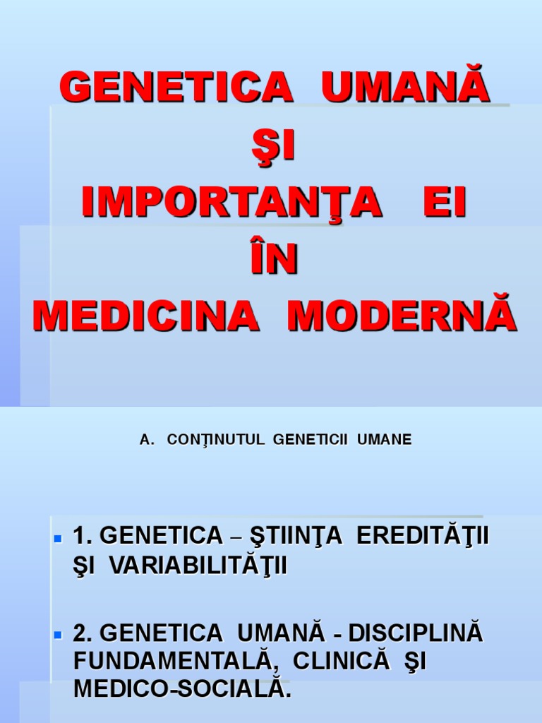 A. CONŢINUTUL GENETICII UMANE