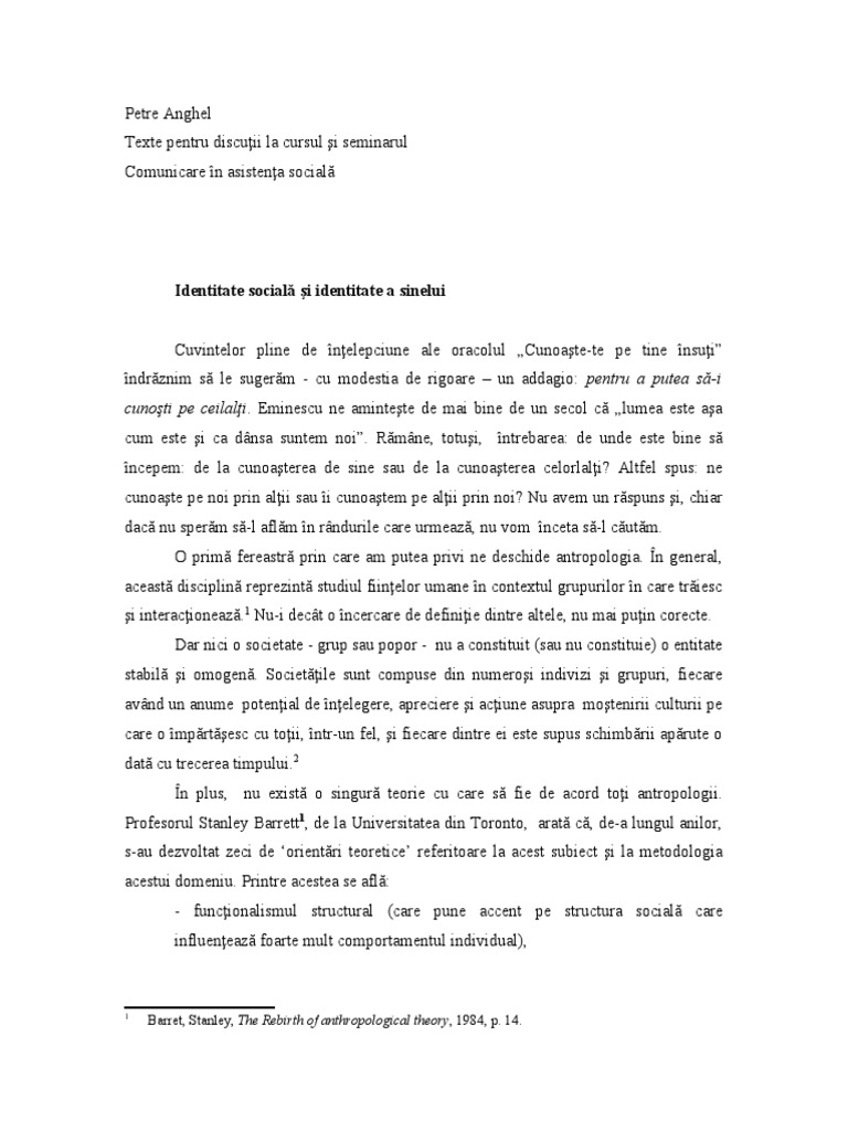 indivizilor de a se face înţeleşi şi a înţelege pe alţii. Întrebarea Cine sunt eu ? este,