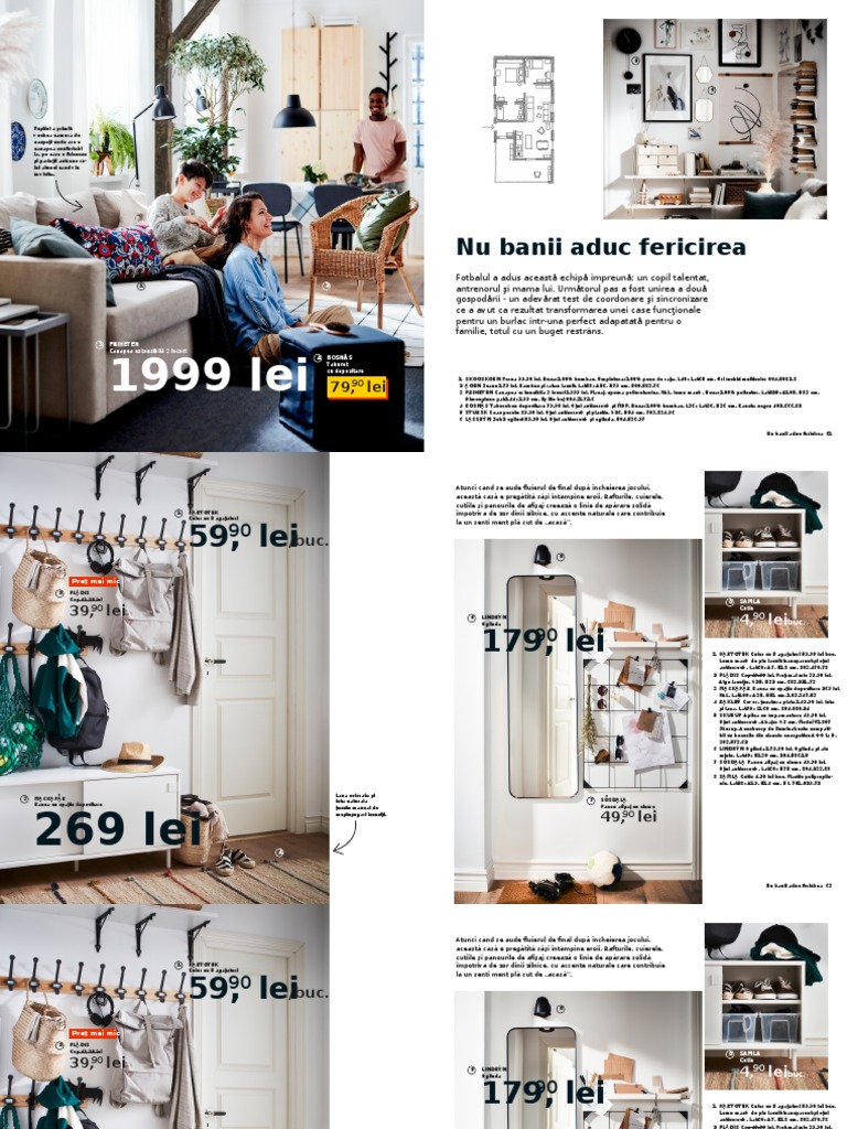 1 TVÄRFOT Veioză 44,90 lei. Ceramică vitrificată 3 KORNSJÖ Corp cu oglindă 1299. lei Preţ 6 SLATTUM Cadru pat capitonat 599 lei.