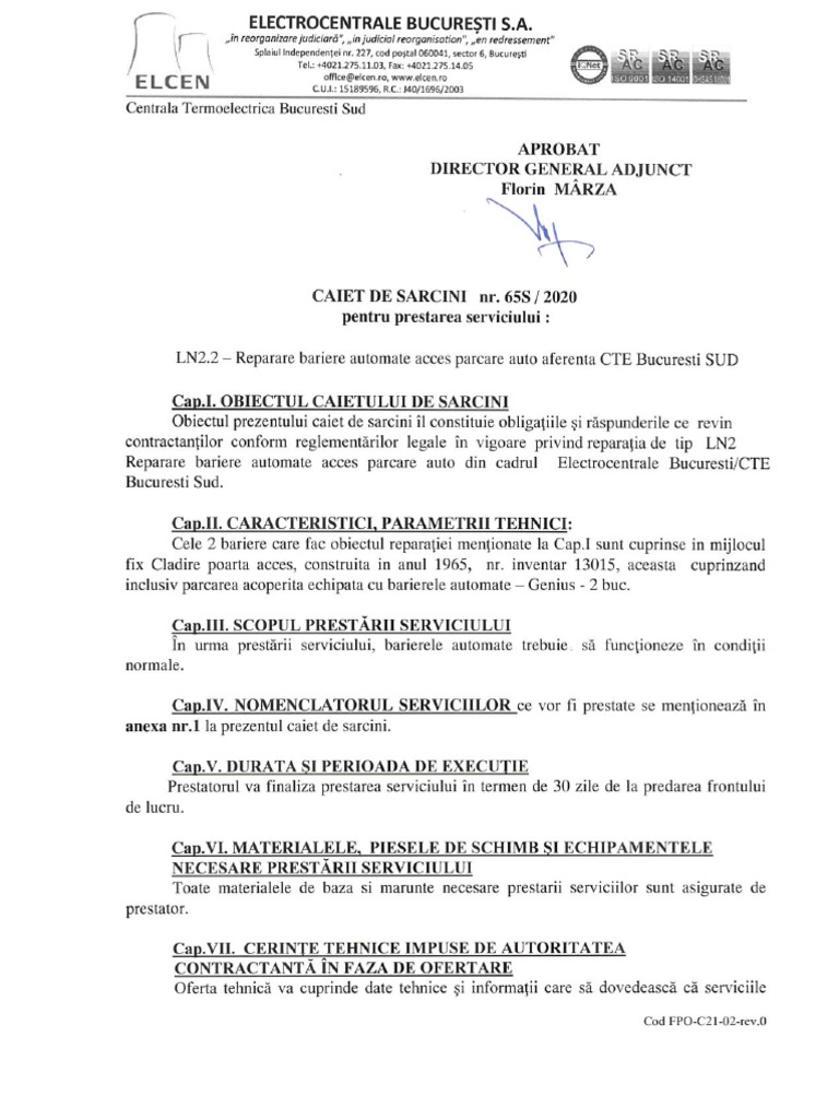 Cod FPO-C21-02-rev.0solicitate se vor executa respectind cerinfele caictului de sarcini.
