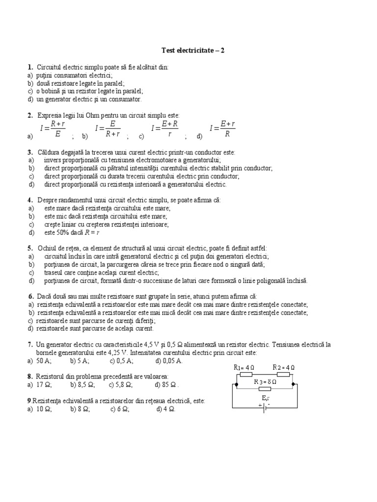 1. Circuitul electric simplu poate să fie alcătuit din: