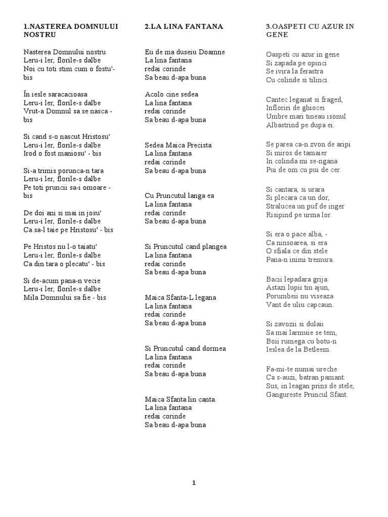 Leru-i ler, florile-s dalbe La lina fantana Cantec leganat si fraged,
