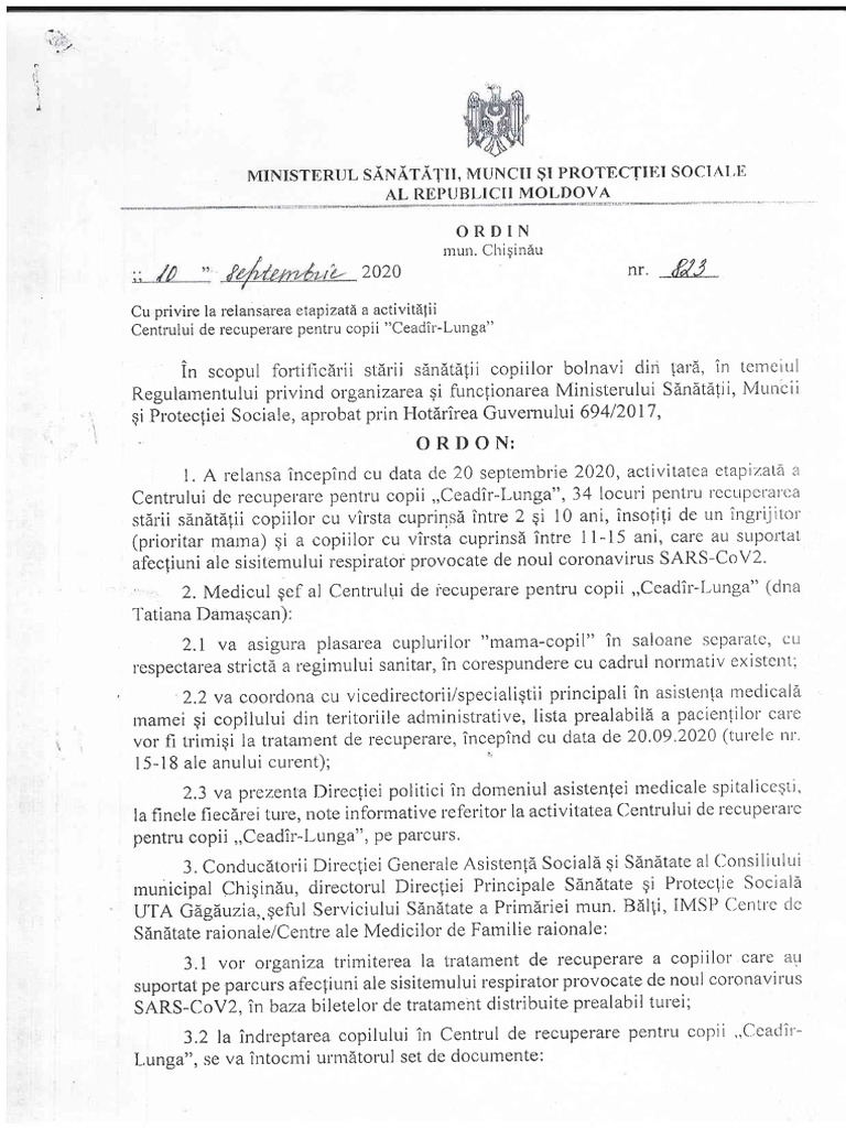 2. Medicul qef al Centrului de iecuperare pentru copii ,,Ceadir-l-unga" (dna