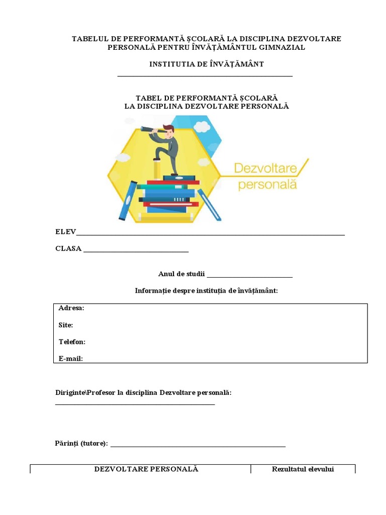 TABELUL DE PERFORMANTĂ ŞCOLARĂ LA DISCIPLINA DEZVOLTARE