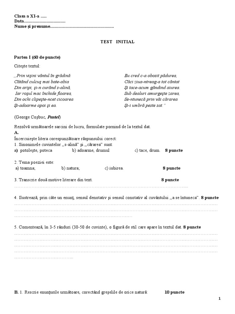 PARTEA I (60 de puncte) A.