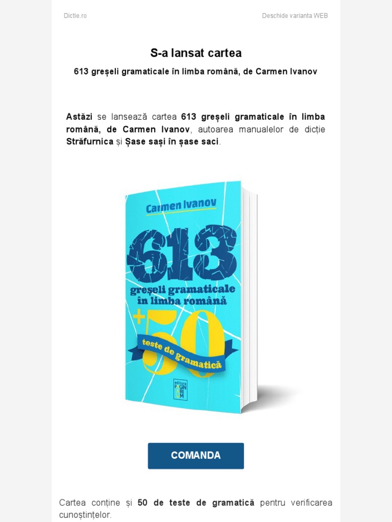 613 greșeli gramaticale în limba română, de Carmen Ivanov, este