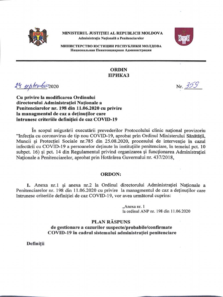 Penitenciarelor nr. 198 din 11.06.2020 cu privire la managmentul de caz a detinutilor care