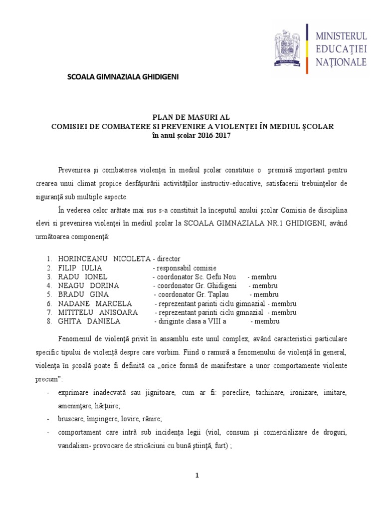elevi si prevenirea violenţei în mediul şcolar la SCOALA GIMNAZIALA NR.1 GHIDIGENI, având