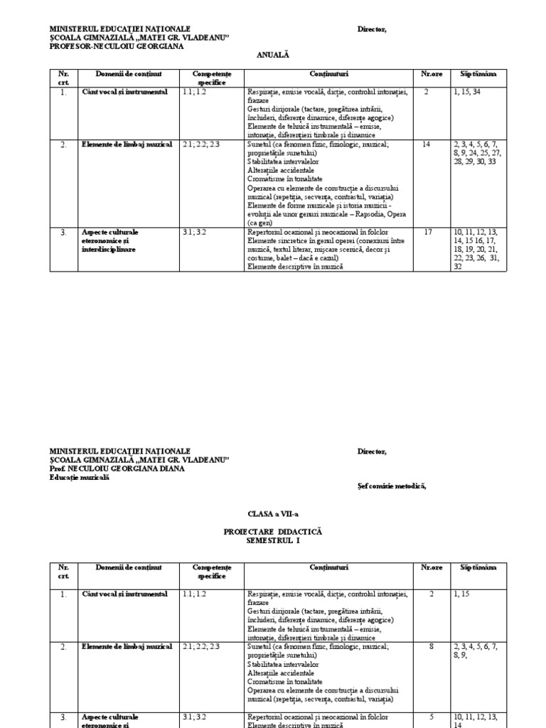Nr. Domenii de conținut Competenţe Conţinuturi [Link] Săptămâna