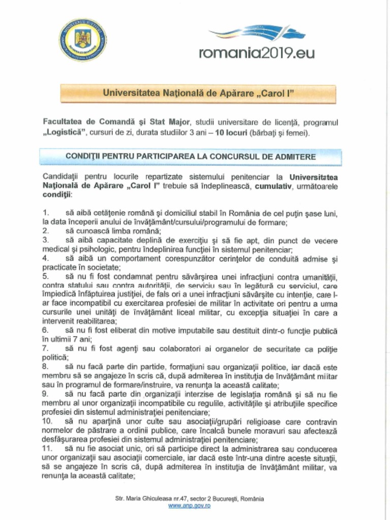 admitere la Universitatea Nationala de Aparare Carol I" este