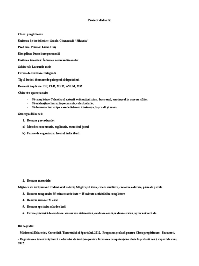Proiect didactic