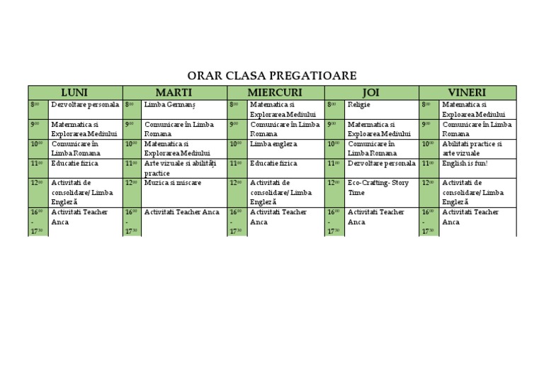 ORAR CLASA PREGATIOARE