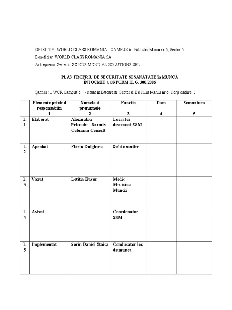 • este întocmit planul de prevenire şi protecţie compus din măsuri tehnice, sanitare, organizatorice şi de altă