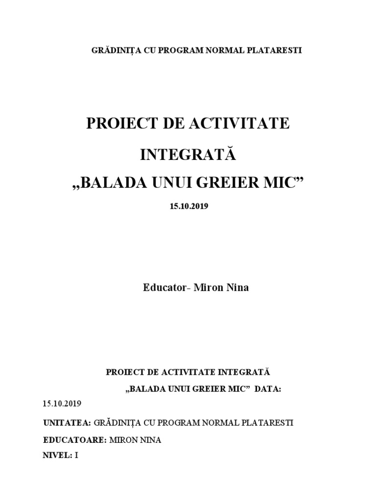 PROIECT DE ACTIVITATE INTEGRATĂ