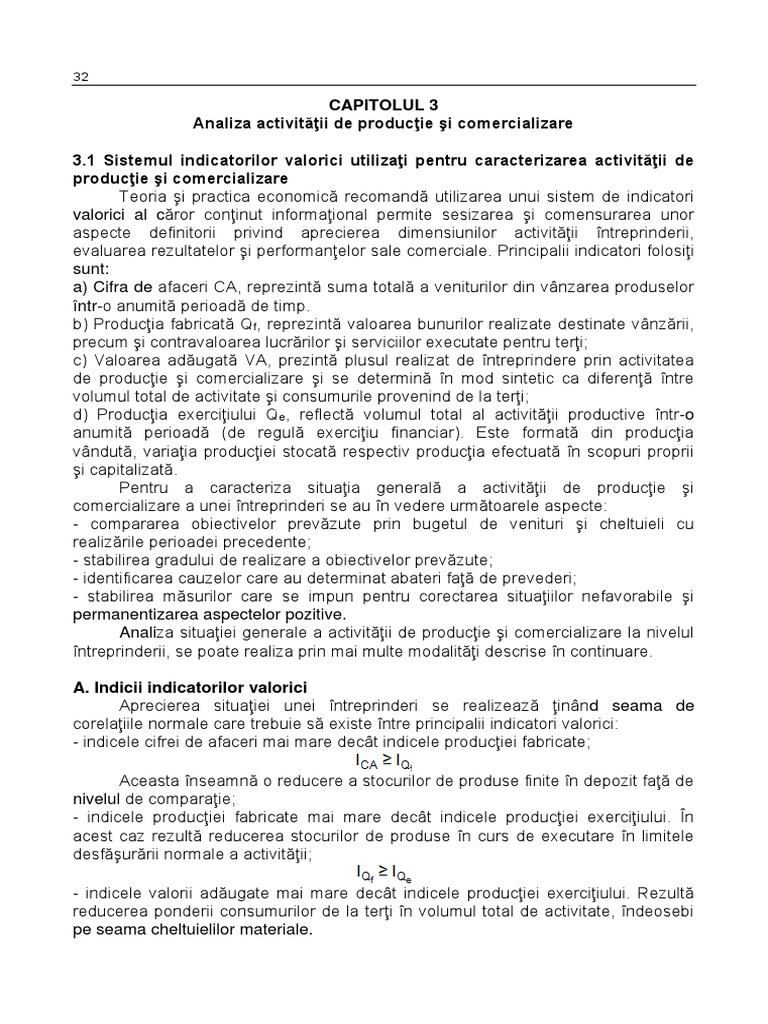 3.1 Sistemul indicatorilor valorici utilizaţi pentru caracterizarea activităţii de