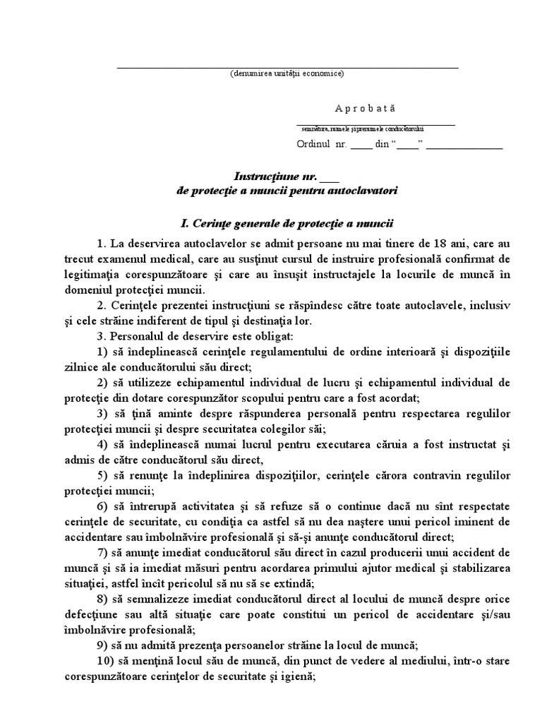 de protecţie a muncii pentru autoclavatori