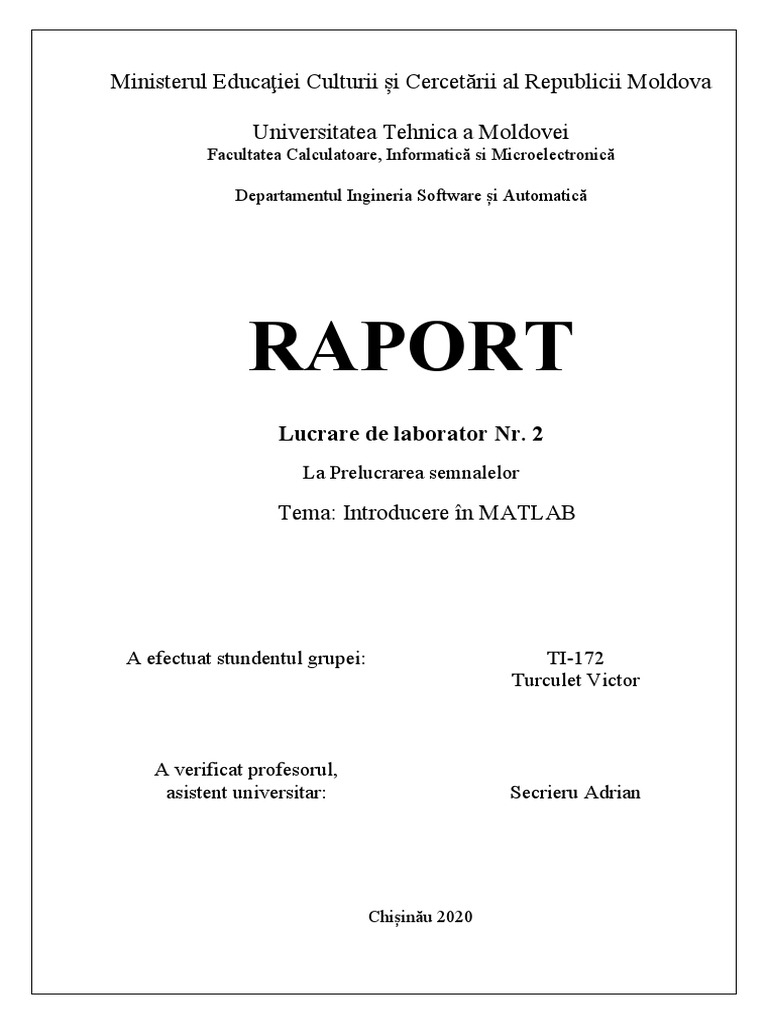 Studierea posibilităților sistemului MATLAB în modelarea diferitor forme de semnale în