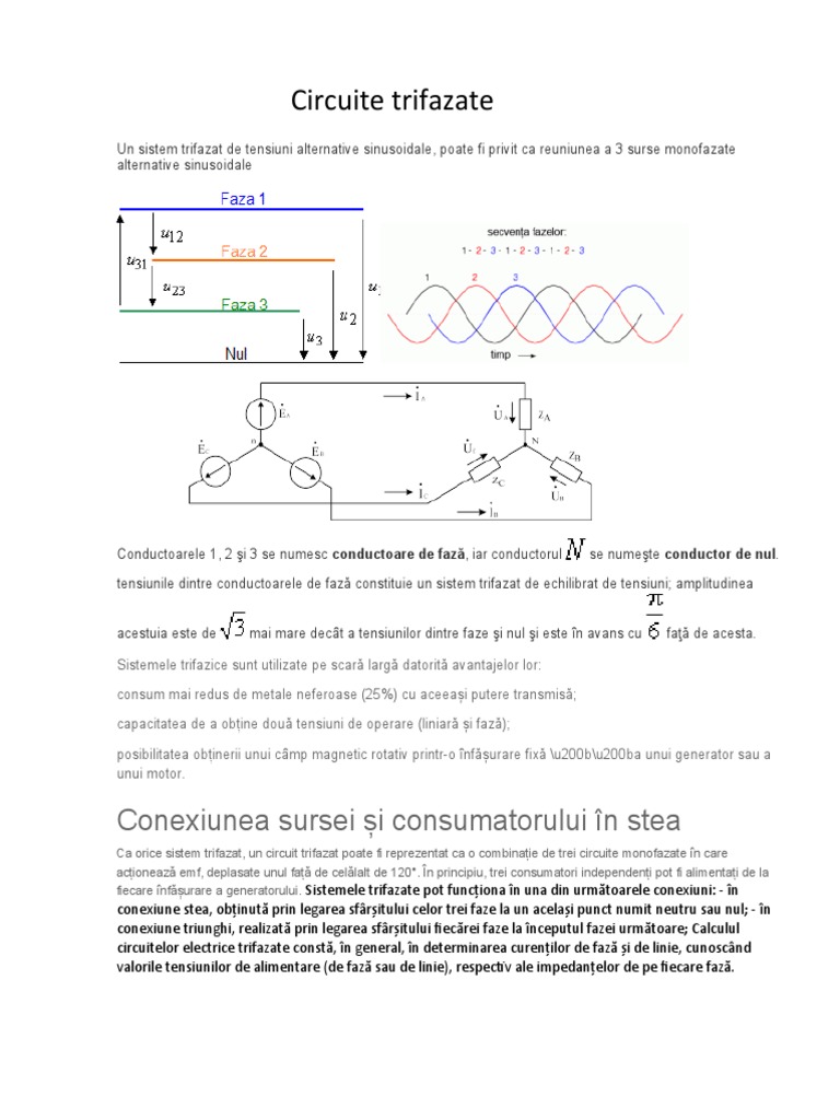fiecare înfășurare a generatorului. Sistemele trifazate pot funcționa în una din următoarele conexiuni: - în