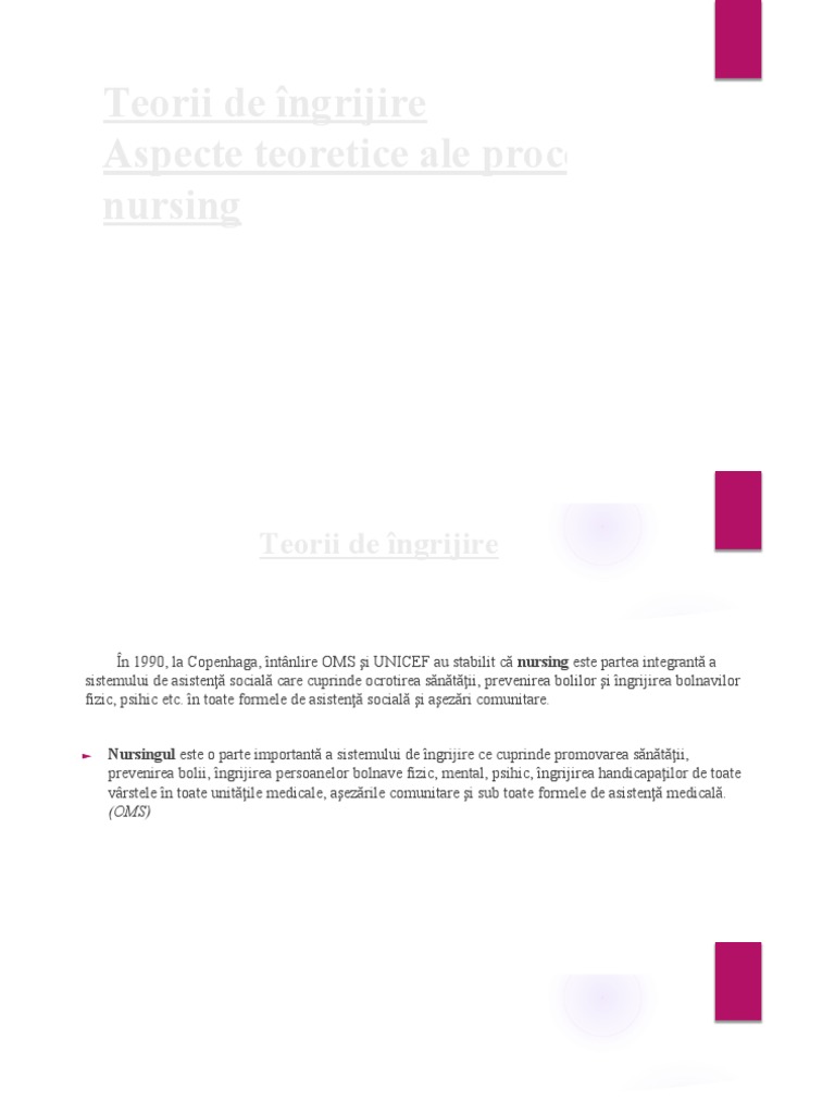 ► Nursingul este o parte importantă a sistemului de îngrijire ce cuprinde promovarea sănătăţii,