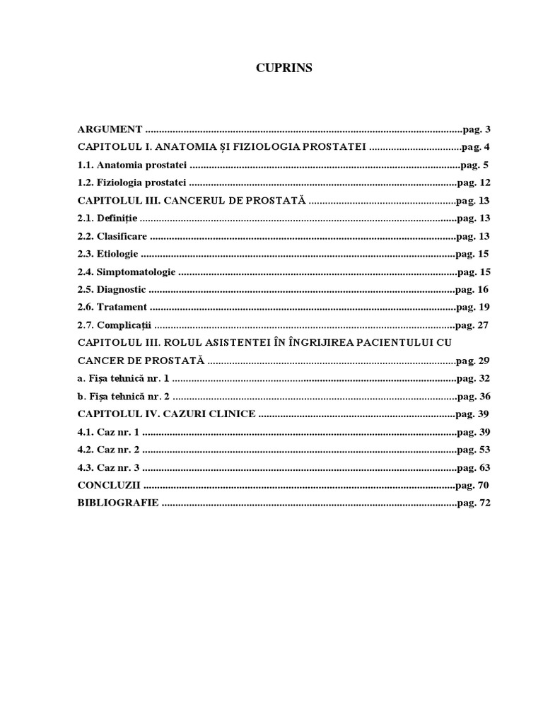 CAPITOLUL III. CANCERUL DE PROSTATĂ ......................................................pag. 13