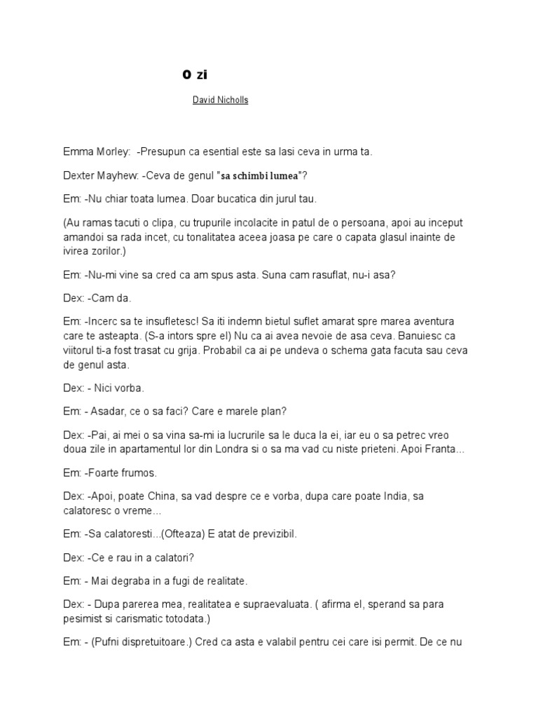 Emma Morley: -Presupun ca esential este sa lasi ceva in urma ta.