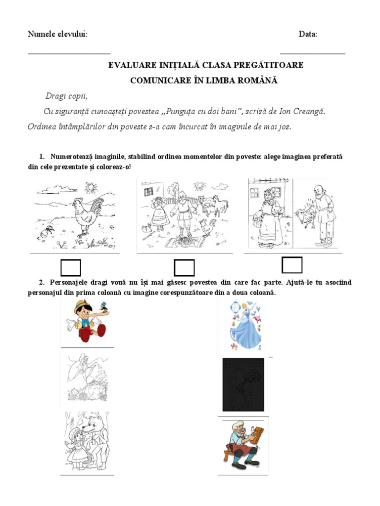 EVALUARE INIȚIALĂ CLASA PREGĂTITOARE