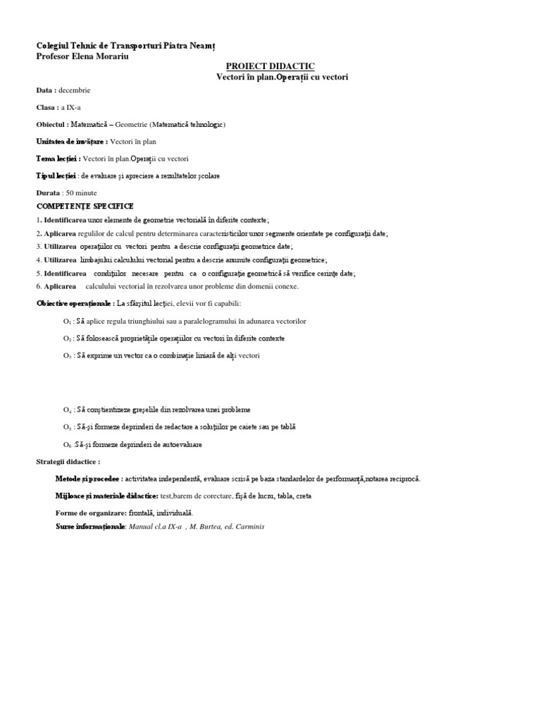 Tema pentru acasă studiate în capitolul „Vectori în plan” și îi anunţă că în spune de profesor. Conversaţia Frontală