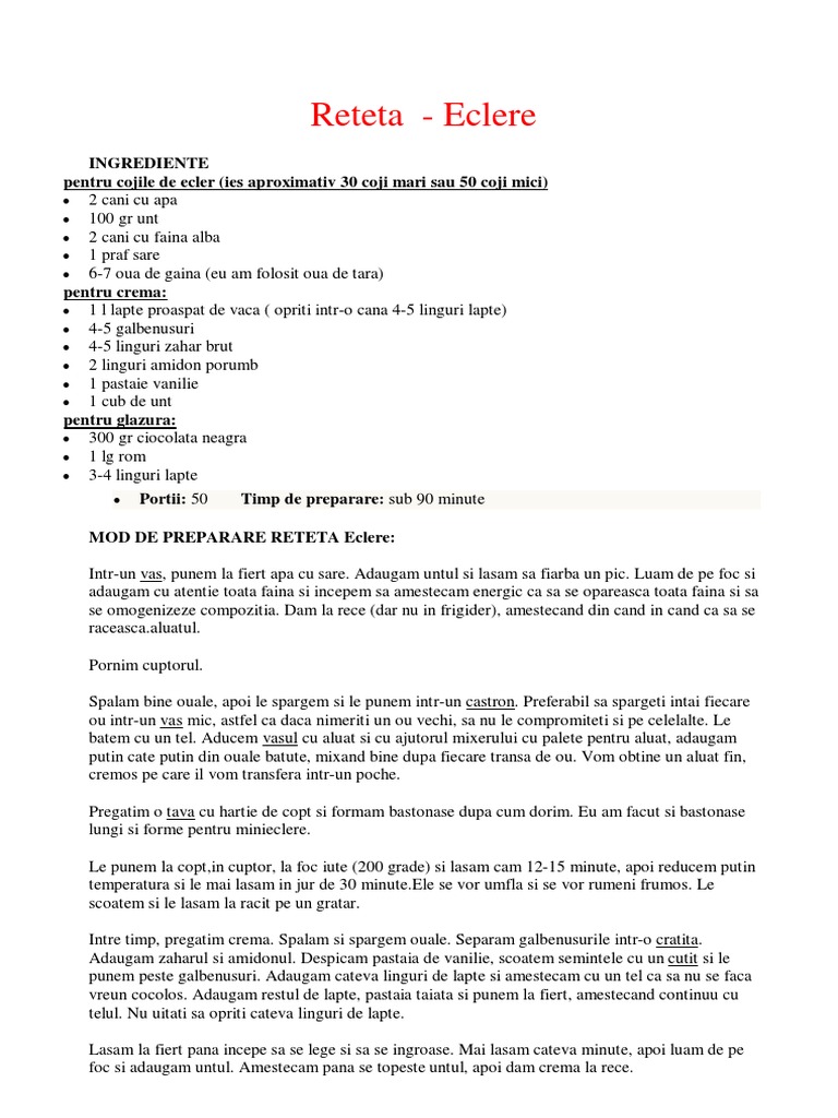 MOD DE PREPARARE RETETA Eclere: