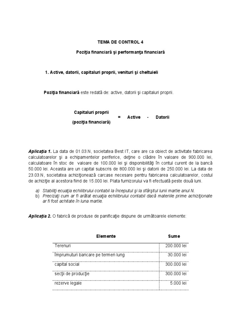 a) Verificaţi ecuaţia echilibrului contabil (Active = Capitaluri proprii + Datorii);