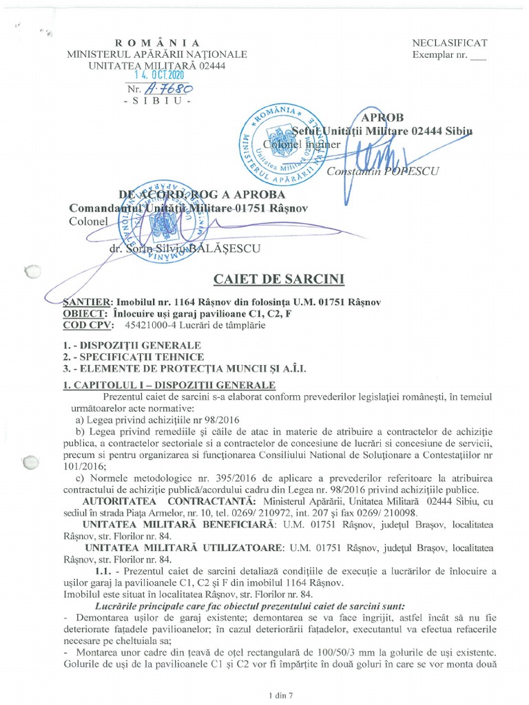 fizice. Toate dispozitiile cuprinse in prezentul caict de sarcini vor fi respectate cu strictete de