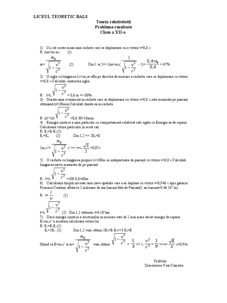 1) Cu cat creste masa unei rachete care se deplaseaza cu o viteza v=0,8 c.