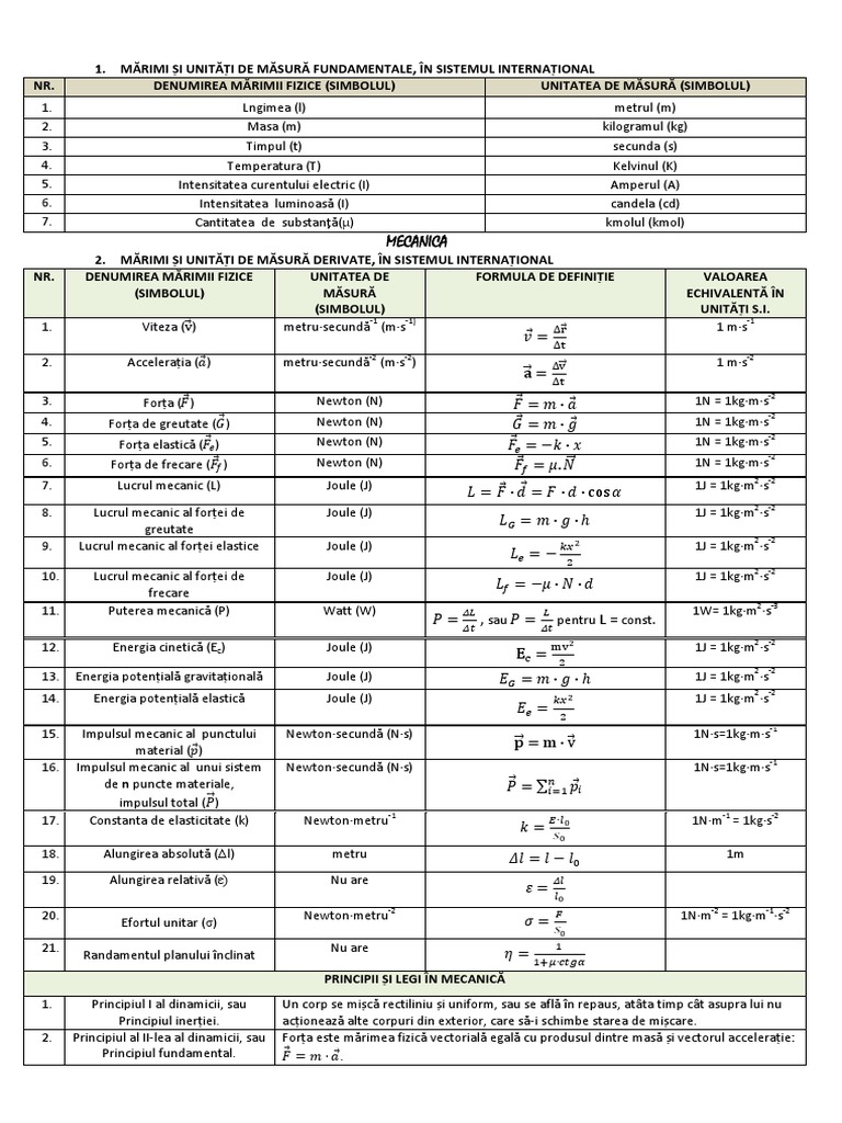 1. MĂRIMI ȘI UNITĂȚI DE MĂSURĂ FUNDAMENTALE, ÎN SISTEMUL INTERNAȚIONAL