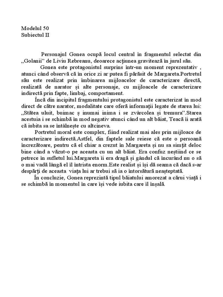 În concluzie, Gonea reprezintă tipul băiatului amorezat a cărui viață i