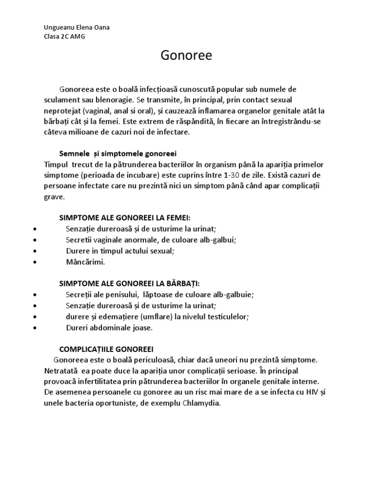 Gonoreea este o boală infecțioasă cunoscută popular sub numele de