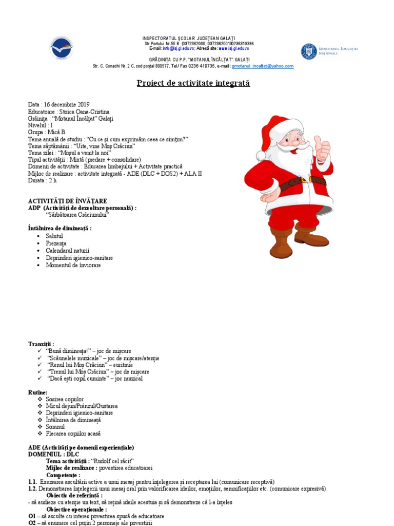 Proiect de activitate integrată