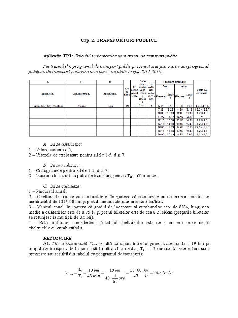 A1. Viteza comercială Vcom rezultă ca raport între lungimea traseului Lt = 19 km şi