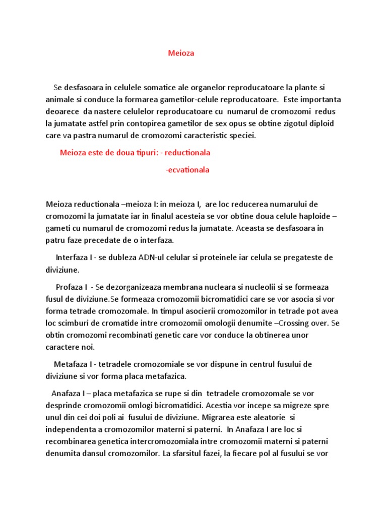 gameti cu numarul de cromozomi redus la jumatate. Aceasta se desfasoara in