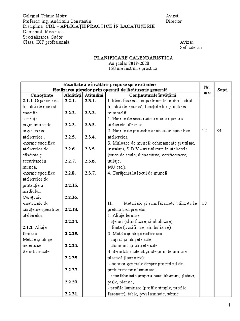 2.1.4. Tehnologia 2.2.39. lăcătușerie generală. 8