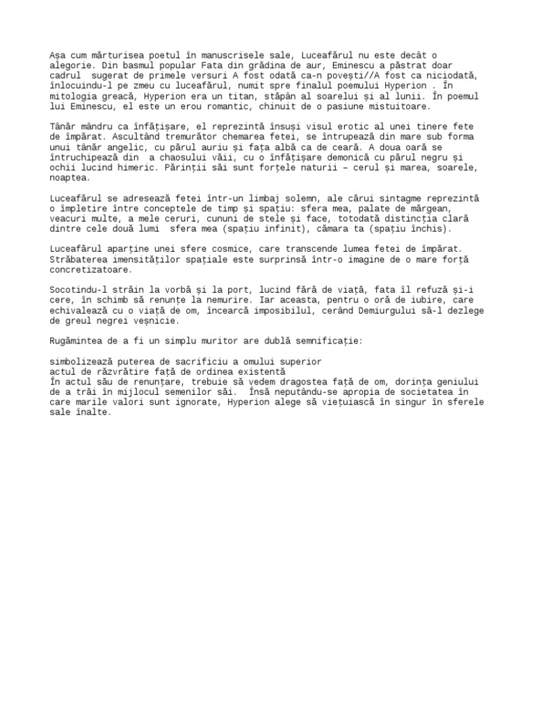 alegorie. Din basmul popular Fata din grădina de aur, Eminescu a păstrat doar
