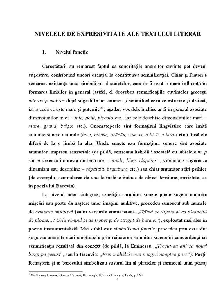 NIVELELE DE EXPRESIVITATE ALE TEXTULUI LITERAR